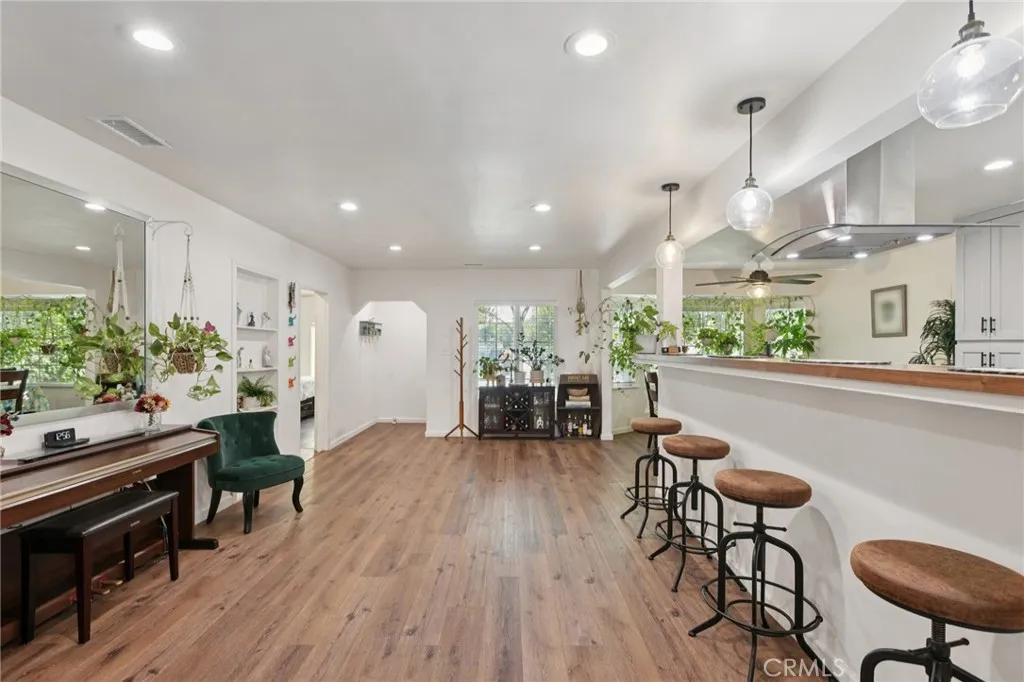 Welcome to this beautifully updated 3-bedroom, 2-bath home offering comfort, functionality, and thoughtful upgrades throughout. Originally 1,393 sq. ft., the home has been expanded to include an additional approx. 400 sq. ft. lower-level living room/den featuring a gas fireplace and double-pane windows, all completed with city permits and up to code. Recent upgrades completed within the last five years include: Full kitchen remodel with new cabinets, fixtures, double pane windows and flooring that extends through the common areas Recessed lighting throughout the main living spaces Updated bathrooms and laminate flooring in all bedrooms New central HVAC system with new ductwork (approx. 2 years old) New water heater (approx. 2 years old) Partial roof replacement (2/3 replaced during expansion project) New backyard cement slab and two underground storm drains for improved drainage Enjoy the spacious backyard filled with established fruit trees, including avocado, orange, lime, fig, dragon fruit, and cactus. Additional highlights include an insulated garage door. Garage used as a playroom. This move-in ready home offers a rare combination of modern upgrades, expanded living space, and a peaceful outdoor setting in one of Downeys most convenient neighborhoods.