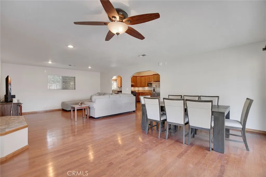 Perched on a generous lot with breathtaking mountain views, this beautifully maintained single-story home blends comfort, functionality, and outdoor space in one of Rancho Cucamongas most desirable settings. Offering 3 bedrooms and 2 full bathrooms, the home welcomes you with an open, light-filled floor plan designed for both everyday living and entertaining. Warm wood flooring flows throughout the main living areas, while updated carpet in all three bedrooms adds comfort and balance. The spacious kitchen is the heart of the home, featuring granite countertops, abundant cabinetry, stainless steel appliances, and a brand-new oven range (2025). It opens seamlessly to a large family room and dining area, where natural light pours in and frames views of the expansive backyard. Step outside to discover a huge, flat green lawnperfect for entertaining, play, or future customizationset against stunning mountain vistas. The yard is accented by mature fruit trees, including avocado, lemon, and grapefruit, creating a peaceful and productive outdoor retreat. RV space and a two-car garage add rare practicality and flexibility. The primary suite features upgraded dual sinks, while the secondary bathroom has been refreshed with an updated vanity. Additional improvements include a new hot water heater (August 2019) and a newly installed neighboring fence (2025), providing added value and peace of mind. With its large lot, open layout, cathedral ceilings, recessed lighting, mountain views, and thoughtful updates, this home offers an exceptional opportunity to enjoy Southern California livin