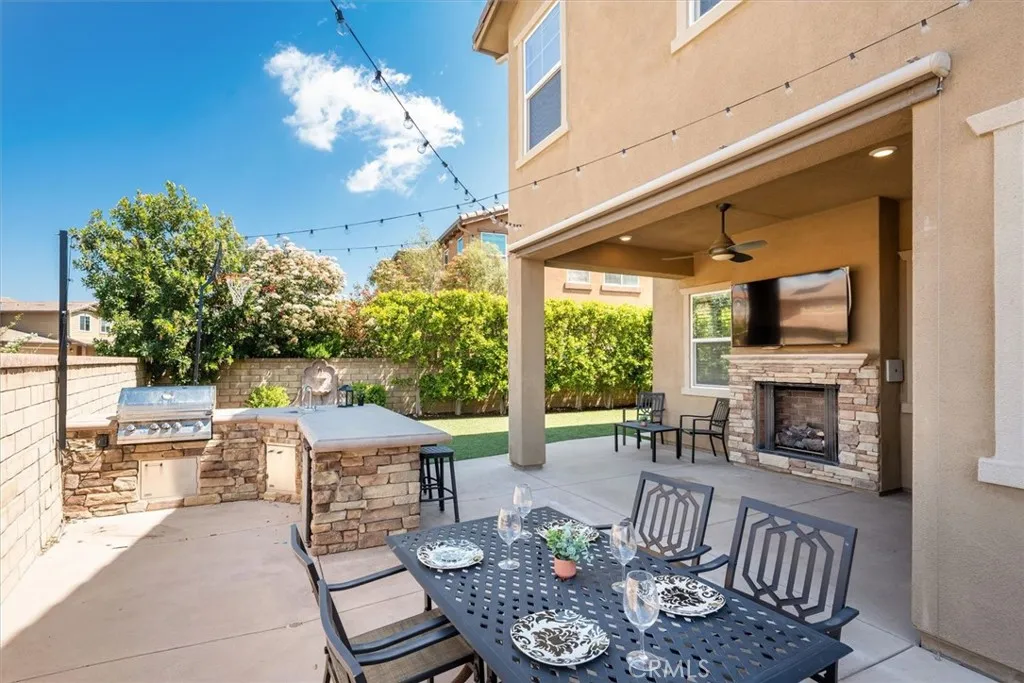 Welcome to this stunning 5 bedroom plus loft home with owned solar and situated on a prime corner lot in the highly sought after gated community of West Hills! This beautiful home combines elegance, comfort and exceptional design in one impressive package. Enjoy an open-concept floorplan perfect for entertaining, featuring a spacious family room with a cozy gas fireplace and a gourmet chefs kitchen with granite countertops, stainless steel appliances, double ovens, a walk-in pantry, and an oversized island that flows effortlessly into the dining area. A formal dining room opens to a beautifully designed outdoor living space complete with a built-in fireplace, twinkling string lights, and lovely viewsperfect for relaxing or entertaining under the stars. The main level also offers a private guest/in-law suite with a full bath. Upstairs, you'll find a large loft, three generously sized secondary bedrooms (each with walk-in closets), a full bath with dual sinks, and a well-appointed laundry room with additional linen storage. Retreat to the luxurious primary suite featuring a spacious sitting area perfect for a nursery, home gym, or office, plus an expansive en-suite bath with dual vanities, a soaking tub, a walk-in shower, and two oversized walk-in closets. Additional features include: fresh interior paint, new carpet throughout, owned solar, a 3-car tandem garage, whole house fan, low-maintenance landscaping with artificial turf, and a built-in backyard BBQ station for seamless California living. Residents of West Hills enjoy access to top-tier amenities, including three spar