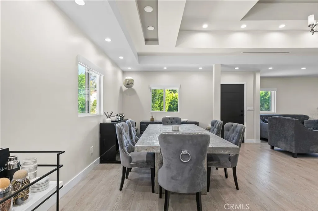 This beautifully fully remodeled 3-bedroom, 2-bath home combines modern design with everyday comfort. Step inside to an open-concept layout where the chefs kitchen flows seamlessly into the dining and living spaces. The kitchen features sleek white cabinetry, quartz countertops, a spacious island with bar seating, and contemporary pendant lightingideal for both entertaining and casual family meals. The dining area is framed by tray ceilings, recessed lighting, and large windows that fill the space with natural light, creating a bright and welcoming atmosphere. Elegant flooring runs throughout, complementing the homes clean lines and modern finishes. Good sized bedrooms, including a private primary suite, offer comfortable retreats with updated bathrooms featuring stylish tile work and fixtures. Junior ADU permits and drawings are available, it is approved and is ready for the new buyer to build. Located in a desirable neighborhood, this home is close to schools, shopping, dining, and freeway access, making it the perfect balance of convenience and style.