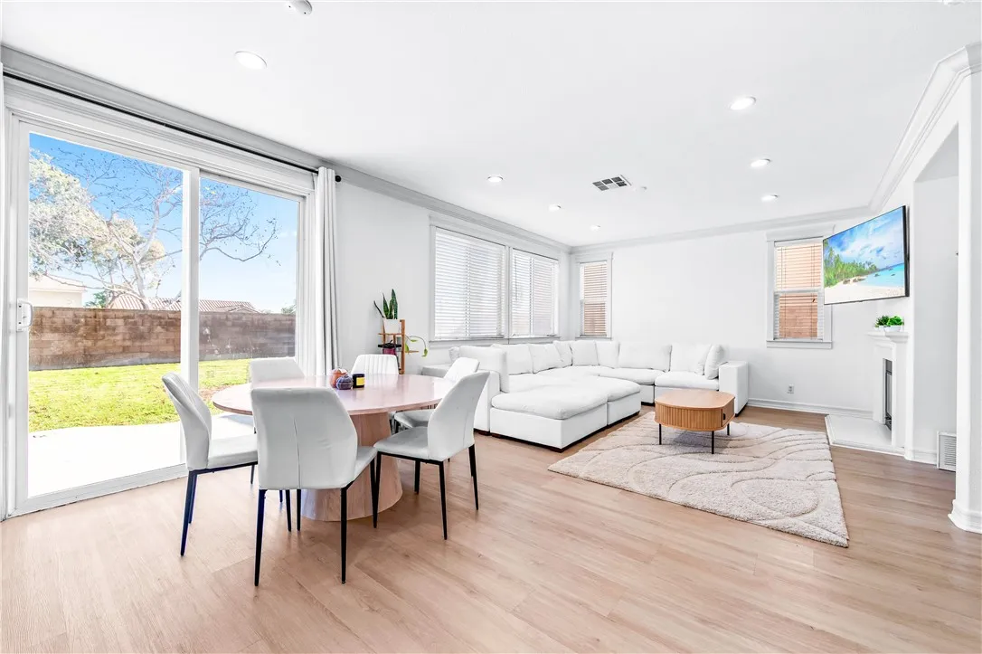 Located in the highly desirable Eastvale / Heartland community, this beautifully maintained two-story home offers 4 bedrooms, 2.5 bathrooms, and a flexible floor plan ideal for modern living. The open-concept layout features a spacious kitchen with ample counter space, wood cabinetry, and a center island, seamlessly flowing into the dining area and family room with a cozy fireplaceperfect for both everyday living and entertaining. The first floor includes a convenient half bathroom and a versatile bonus room that can be used as a home office, playroom, or optional fourth bedroom. Upstairs, the generous primary suite features dual sinks, a soaking tub, a separate shower, and a large walk-in closet, along with two additional bedrooms and a full hall bathroom. Upgrades include laminate and hardwood-style flooring, tile bathrooms, crown molding, and double-pane windows. The exterior has just been freshly painted, enhancing curb appeal and move-in readiness. Situated on a large, landscaped lot, the backyard offers plenty of space for outdoor entertaining or a future pool. A two-car garage with a convenient drive-through door adds functionality and easy backyard access. Additional highlights include solar energy (leased system), a low tax rate, and the rare benefit of no HOA. The home also includes smart home features, such as a smart thermostat, smart lighting, smart door locks, and a smart garage door opener for added comfort and efficiency. Ideally located within walking distance to award-winning schools, parks, and shopping, with easy access to the I-15 freeway and nearby Eas