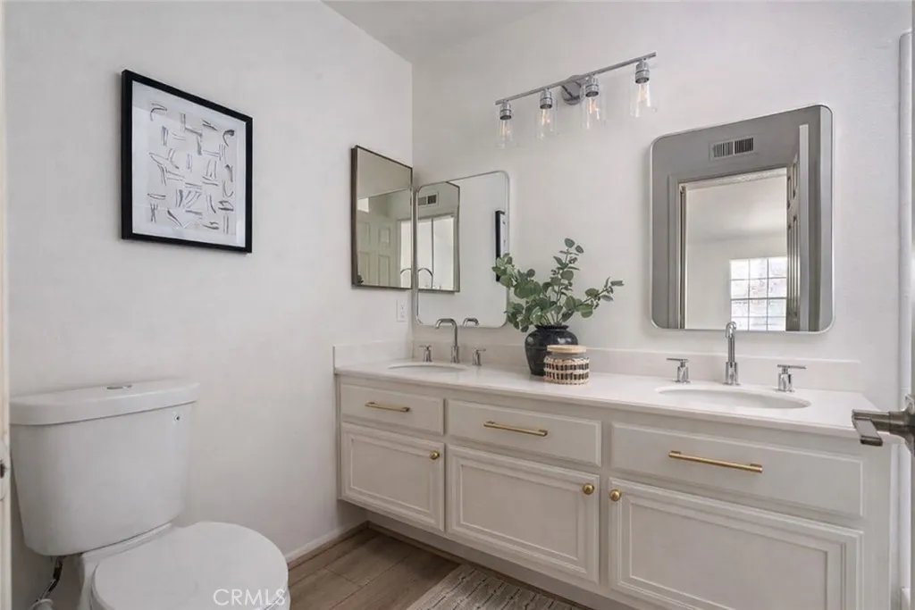Experience the pinnacle of Southern California living in this stunning condo located in the heart of Irvine, consistently ranked as one of the nations most desirable cities. Recently reimagined with a meticulous eye for detail, this residence offers a seamless blend of contemporary luxury and effortless comfort. From the moment you step inside, you are greeted by a dramatic, light-drenched interior defined by soaring two-story vaulted ceilings and expansive windows that invite the outdoors in. The open-concept main level is a masterpiece of modern design, featuring stylish vinyl flooring, fresh neutral paint, and a chefs dream kitchen boasting sleek quartz countertops and a full suite of brand-new stainless steel appliances. The thoughtful layout provides a rare indoor-outdoor flow with dual private outdoor spaces, including a welcoming front patio and a secluded back retreat perfect for alfresco dining. Upstairs, the home transitions into a quiet sanctuary with brand-new flooring throughout the bedroom retreats. The primary suite features dual closets and a completely refreshed ensuite with new custom shower glass, upgraded vanity mirrors, and designer fixtures. The secondary bedroom offers ultimate convenience with its own fully updated private bathroom, making it an ideal space for guests or a sophisticated home office. Beyond the impeccable interior, this home offers the ultimate in modern convenience and peace of mind. Every detail has been addressed, from the newer central HVAC system and designer lighting to the updated hardware, faucets, and shower valves throughout