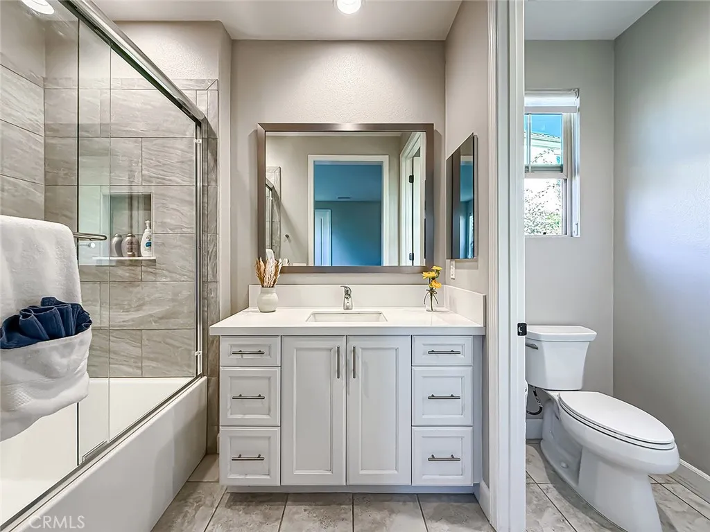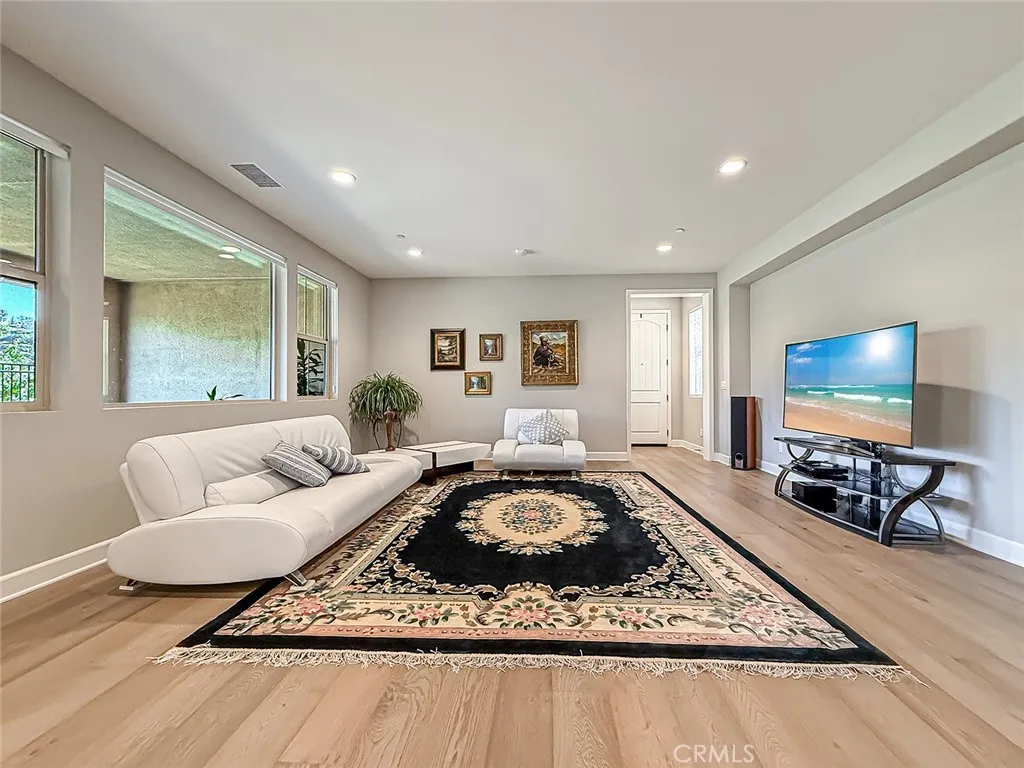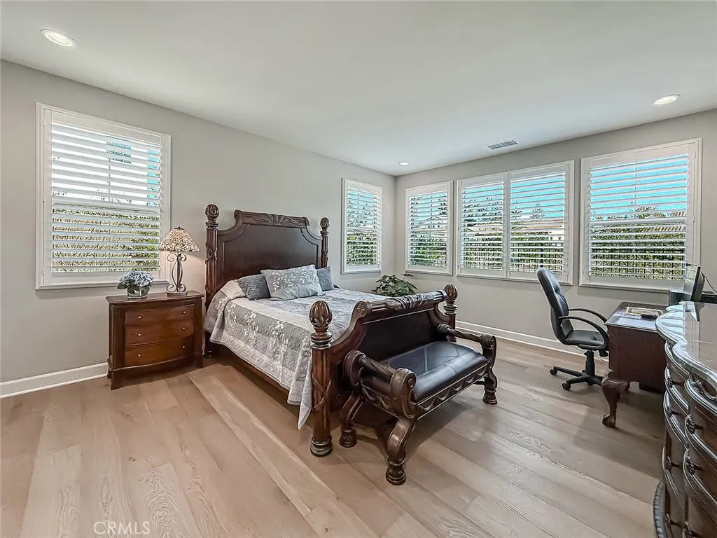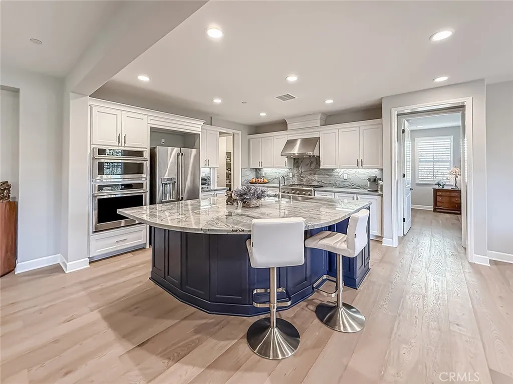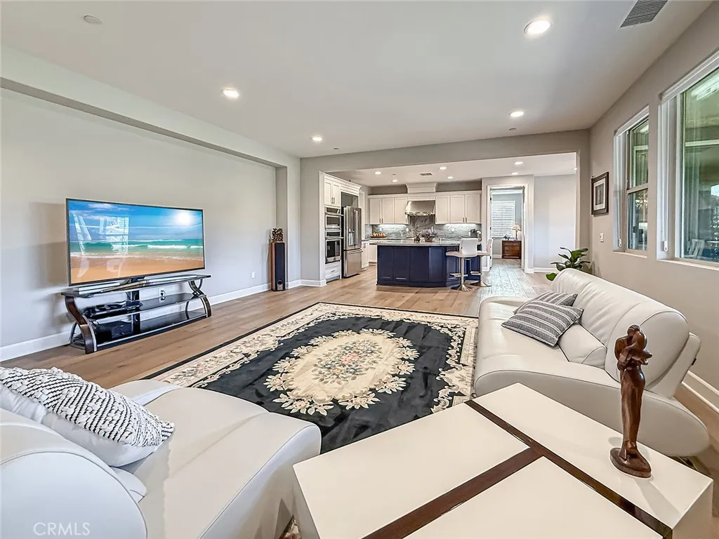 This highly coveted Citron Plan 3 home sits on a premium view lot and does not disappoint! Filled with amazing upgrades throughout, it offers luxurious style in the exclusive Grove 55+ gated community. Upon entering you immediately notice the gorgeous neutral color of the real wood flooring and the natural light flooding in from many windows showcasing the views. This property does not back to another home, providing an open, spacious feeling. This layout is highly sought after for the open flow and large kitchen with an island facing the living space, providing a great room ideal for gatherings and connected daily life. The kitchen features stunning marble counters and backsplash, Monogram appliances, custom cabinetry, and a large basin style sink. The dining room, situated within the large living space, features a gorgeous blue accented chandelier to match the kitchen. Having three bedrooms/three full baths allows for flexible living options and a more private guest space. Two of the bedrooms have large ensuite baths, with the third full bath located right next to the third bedroom. All baths have tile floors and matching tiling in the shower and baths. The primary shower has 12x24 tiles running from floor to ceiling which adds an elevated touch. From plantation shutters and custom window coverings, wood casing around each entry way, recessed lighting, a Fall Scan water softener, EV wiring, and epoxy flooring in the garage and the back patio, there is attention to detail everywhere you look. The backyard has been meticulously crafted into a botanical paradise, fully lands