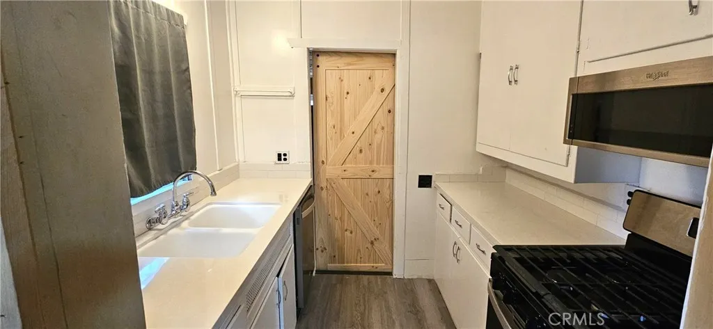 Charming Wrightwood mountain cabin set on a spacious lot of just over 10,000 square feet, offering rare outdoor space and flexibility. The 828 square foot home features two full bathrooms, each with a shower, toilet, and sink, along with one bedroom and two additional bonus rooms that provide versatile options for sleeping areas, office space, or hobby rooms. The interior showcases classic cabin character with wood-paneled walls, exposed beams, and a stone fireplace that anchors the living space. The kitchen and living areas flow comfortably, and the layout makes efficient use of space throughout. Laundry area located inside the home. The property includes the adjacent lot, creating a larger combined parcel with excellent usability. The side yard offers RV hookups, providing added convenience for guests, recreational use, or future possibilities. Multiple storage sheds are located on the property, offering ample room for tools, gear, and seasonal items. Seller has contracted a licensed septic company to install a new septic tank during escrow, with the balance to be paid by seller, offering peace of mind to the next owner. Located among mature pines and near all that Wrightwood has to offer, this property is ideal as a full-time residence, weekend getaway, or mountain retreat.