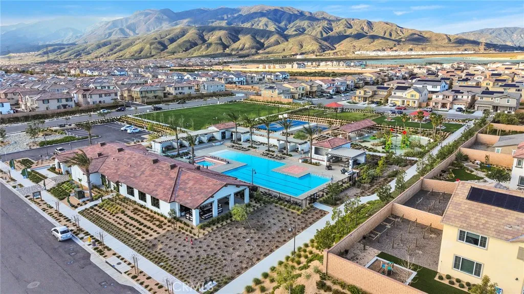 Introducing 16604 Quince Lane. This stunning four-bedroom, two-and-a-half-bath home, built in 2024, offers 1,868 square feet of modern living in one of North Fontanas most desirable gated communities, The Arboretum. The open-concept layout features recessed lighting, energy-efficient double-pane windows, and durable vinyl flooring throughout the main level. The gourmet kitchen is appointed with quartz countertops, a large island, self-closing cabinets and drawers, pots and pan storage, and stainless-steel appliances including a gas range, microwave, and dishwasher. The kitchen flows seamlessly into the spacious family room, creating an inviting space for both everyday living and entertaining. Upstairs, the primary suite includes a generous walk-in closet and an upgraded bathroom with double sinks, quartz counters, a soaking tub, and a separate walk-in shower. Three additional bedrooms provide flexibility for family, guests, or a home office. The home includes a tankless water heater, an upstairs laundry room with gas and washer hookups, and a two-car attached garage. The corner lot offers additional privacy and is fully landscaped, with views of both the surrounding mountains and city lights. The property is located within a secured, gated community that offers 24-hour controlled access and professionally maintained grounds. Residents enjoy access to a wide range of amenities, including multiple pools, a spa, a lap pool, pickleball courts, sport courts, a clubhouse, an outdoor cooking area, fire pit, playground, and recreation facilities. The home is powered by a grid-conne