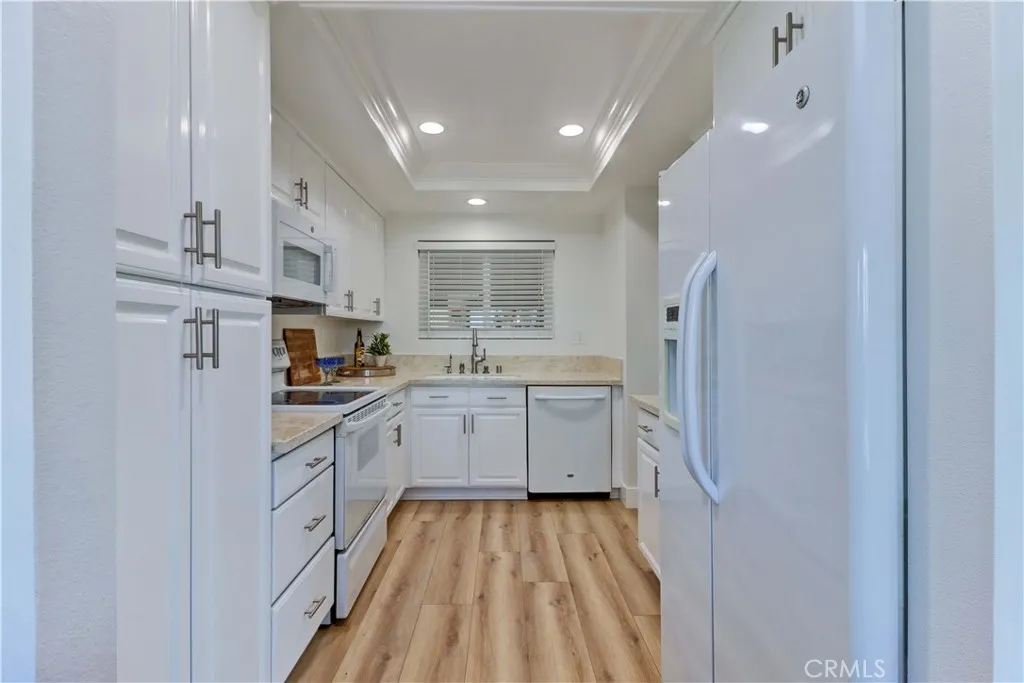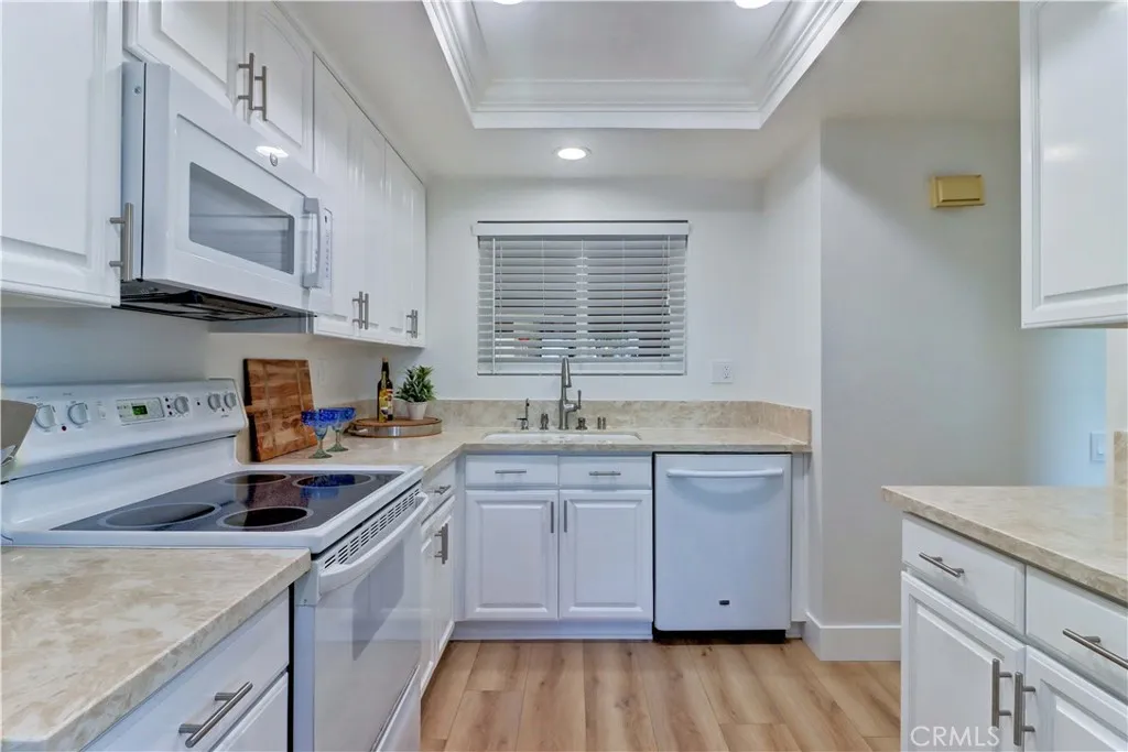 View! View! View! Take in breathtaking northern views towards Irvine, with majestic mountains in the distance, sparkling city lights at night, and even snow-capped peaks during the winter months. This beautifully remodeled second-floor Sierra condo offers a peaceful setting paired with everyday convenience. Ideally located directly across from Clubhouse 6, the home is easily accessible from Gates 9 or 10 and is close to the elevator, laundry room and carportmaking daily living simple and stress-free. Inside, the home feels fresh and inviting with brand-new vinyl plank flooring, fresh paint, and energy-efficient dual-pane windows throughout. Remodeled kitchen is designed with newer cabinetry, quartz countertops, recessed lighting, white appliances, and updated stainless fixtures. The adjacent dining area features a stylish light fixture and opens to the balconyperfect for enjoying the view and fresh air. Spacious living room is centered around a large picture window that fully captures the stunning scenery. A heat pump provides efficient heating and cooling and vintage wet bar adds character and a touch of nostalgiaideal for entertaining or relaxing at home. The sleeping areas include two comfortably sized bedrooms with ample closet space and pleasant southern exposure that brings in soft natural light. Both bathrooms have been updated with quartz-topped vanities, modern faucets, and fixtures. The guest bathroom offers a convenient tub/shower combination, while the primary bathroom features an easy-access walk-in shower. This move-in-ready condo offers the perfect blend of s