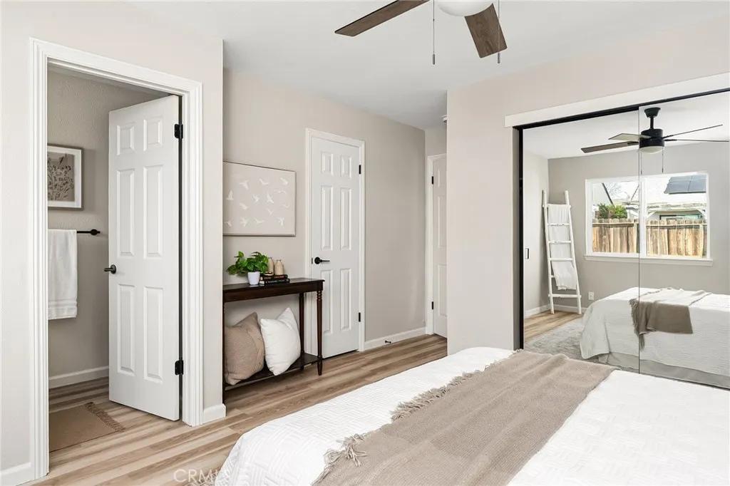 This move-in ready 3-bedroom, 2-bath home has been thoughtfully updated throughout. New flooring flows seamlessly through the open living spaces, complemented by fresh paint inside and out. The kitchen features a modern two-tone cabinet design with dark lowers and crisp white uppers, paired with stainless steel appliances. Both bathrooms have been fully remodeled, and a new roof provides peace of mind for years to come. The refreshed yard is ready for your personal touch. This single-story 1,039 square foot home includes a detached 2-car garage and central heating and cooling. Located in a quiet neighborhood near Rotary Centennial Park within the Chico Unified School District, this turnkey property offers comfortable living without the project list.