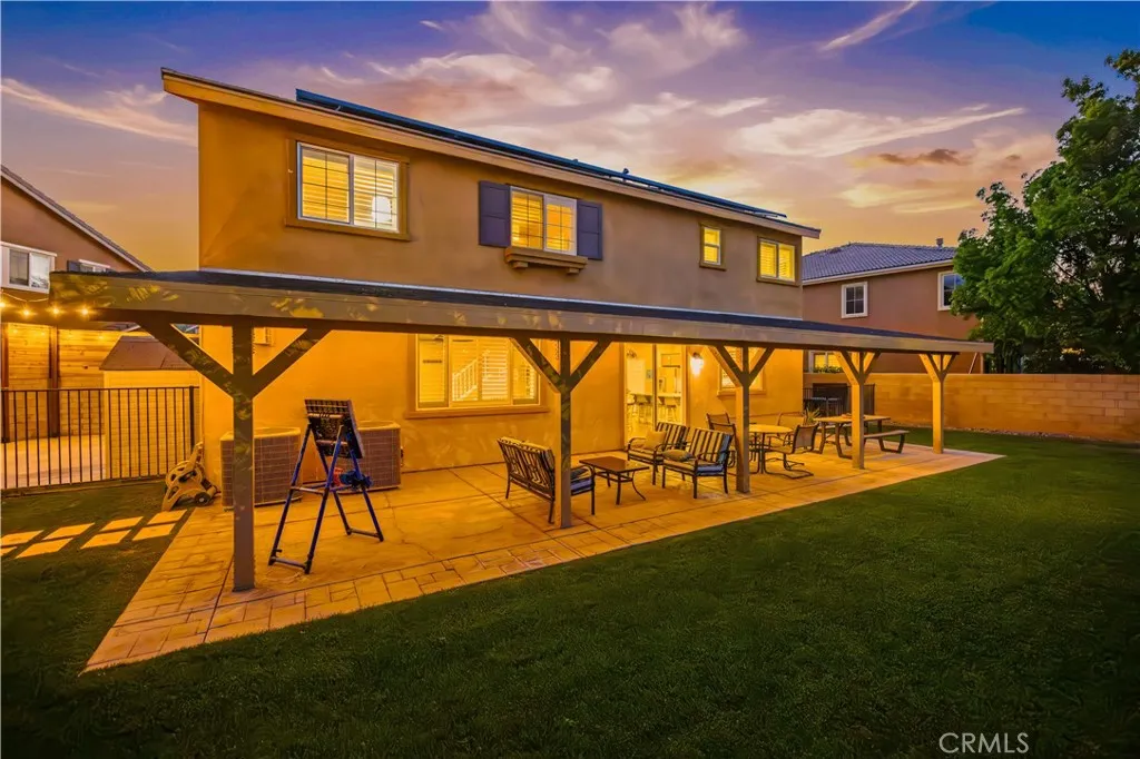 Gorgeous two-story home in West Lancaster with solar and a whole house soft water system with reverse osmosis. This home features beautiful curb appeal with an oversized driveway and a landscaped front yard. Inside you will find an open and spacious floor plan perfect for entertaining. There is a formal living room, a family room, a dining room, and a kitchen. The kitchen has a large island, plenty of counter and cabinet space as well as stainless steel appliances. Downstairs you will also find a bedroom and a full bathroom. Upstairs you will find a spacious loft that can be used as an office, second family room, movie room, etc. The primary bedroom is spacious with enough room for a sitting area, dual closets and a spacious primary bathroom. There are 3 additional guest bedrooms and a guest bathroom upstairs. Lastly, the laundry room is located upstairs as well and the entire house has white vinyl shutters on every window. In the rear yard you will find a spacious covered patio, a landscaped yard, block walls surrounding the property, and a fenced side yard.