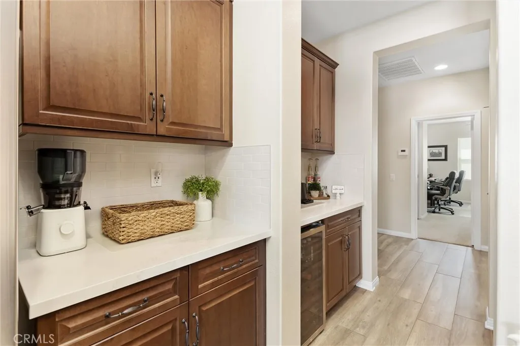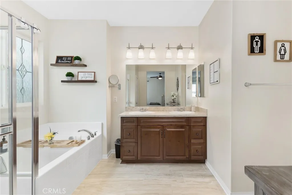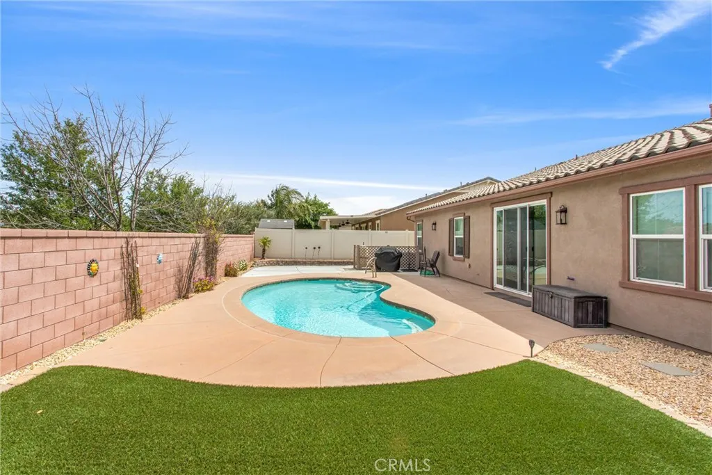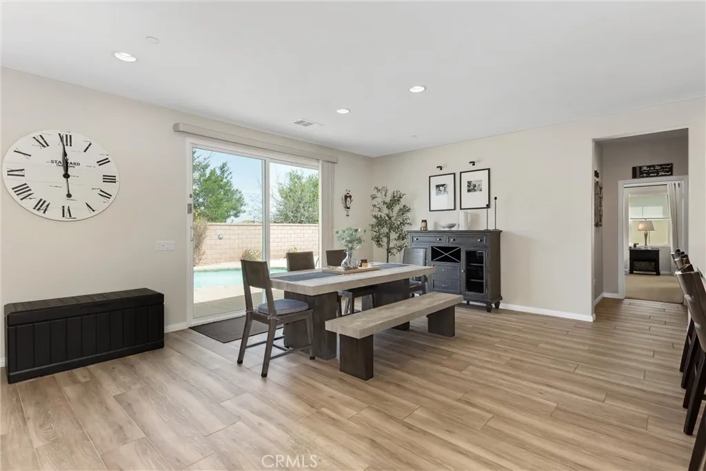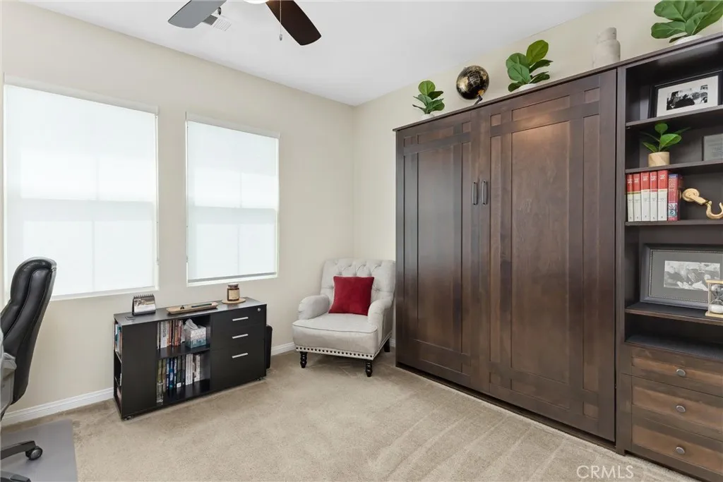 Better than new in Mahogany Hills, this single-story POOL home is the definition of model-perfect living. Immaculate, thoughtfully upgraded, and maintained with exceptional care, it offers a level of quality and presentation rarely found on the market. From the moment you arrive, the elegant front entry and striking custom door set an elevated tone. Inside, an open and airy layout unfoldsenhanced by upgraded tile flooring, 9-foot ceilings, and abundant natural light that accentuates the homes seamless flow. Just off the foyer, a private en-suite bedroom with custom closet cabinetry provides an ideal retreat for guests or multi-generational living. A formal dining room sits adjacent, perfectly positioned for effortless entertaining. The heart of the home is the expansive family room, anchored by beautifully crafted built-in bookshelves and an entertainment center. This space opens seamlessly to the oversized kitchen and casual dining area, creating a true great-room experience. Designed for both style and function, the kitchen features a generous center island, extensive cabinetry, abundant counter space, a premium appliance package, and a butlers pantry with wine fridge. A sliding door off the dining area extends the living space outdoors, enhancing the homes indoor-outdoor lifestyle. Privately tucked away, the primary suite offers a serene escapefeaturing a spacious walk-in closet with custom cabinetry and a beautifully finished bath. Three additional bedrooms are thoughtfully separated, providing comfort and flexibility for family or guests. A versatile office includes a
