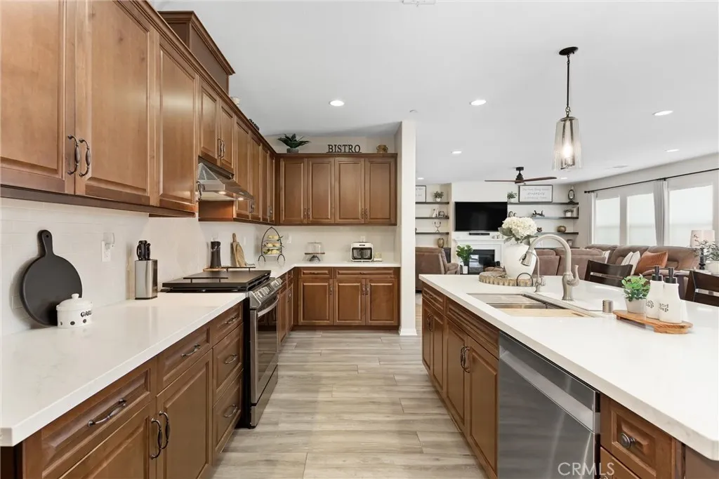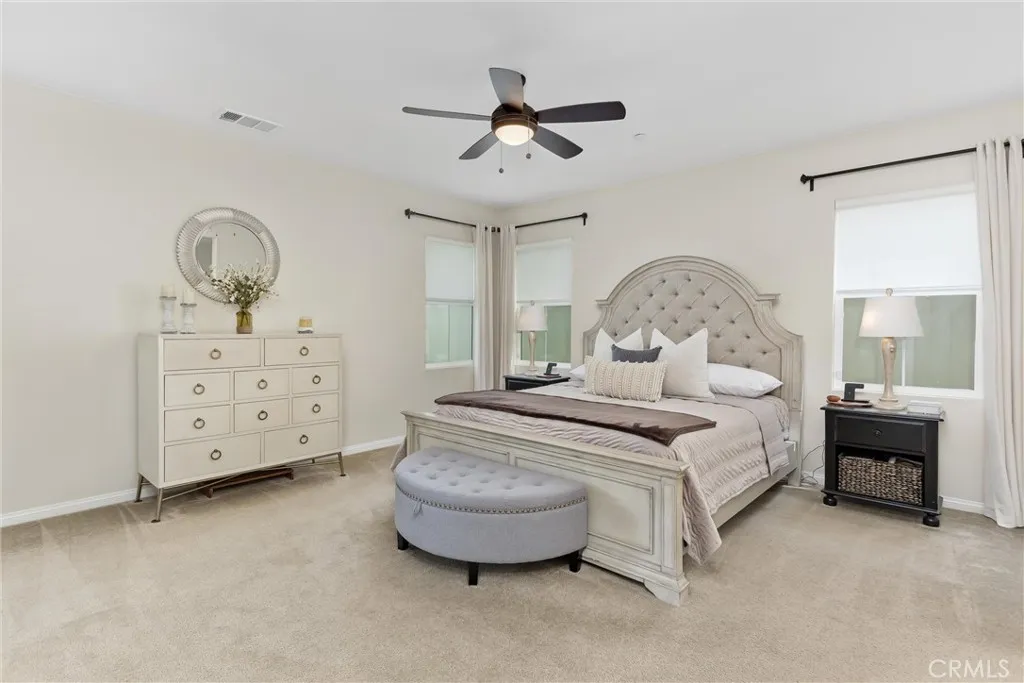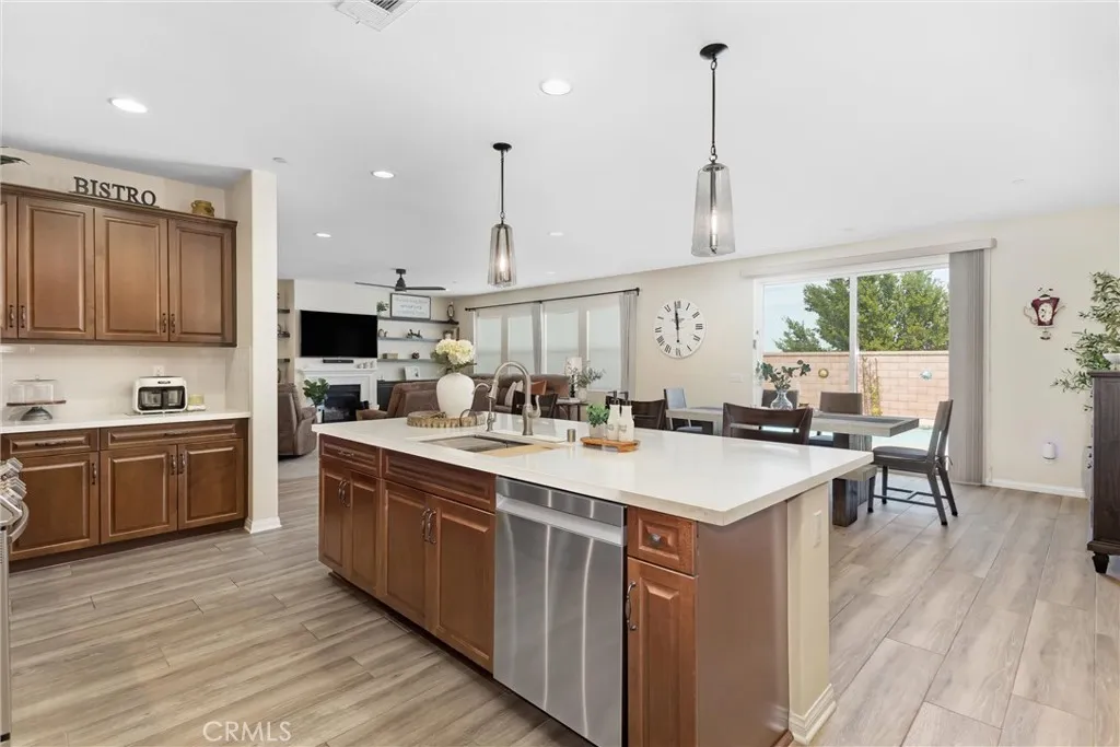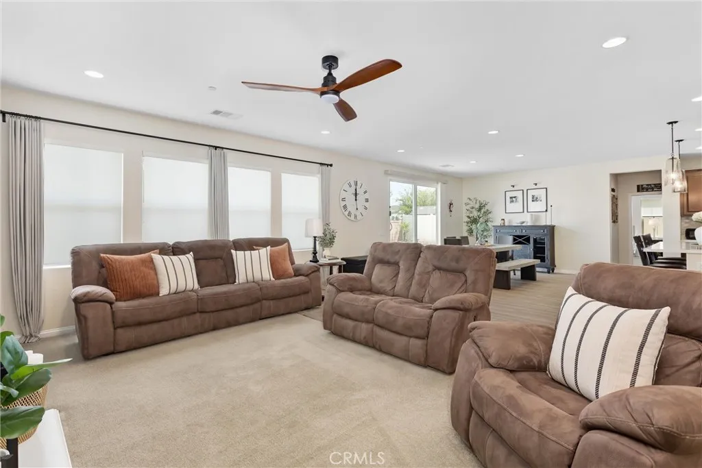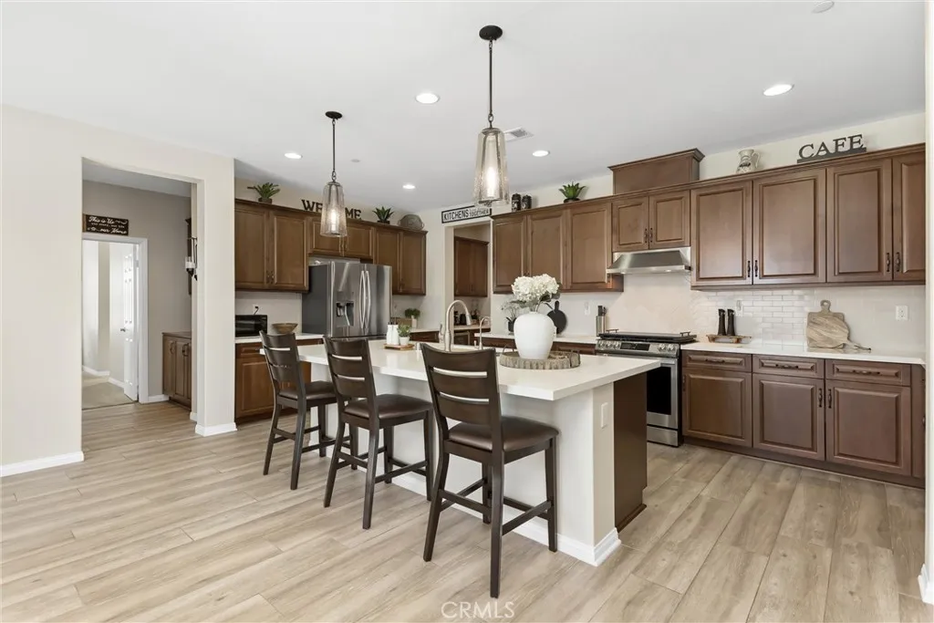 Better than new in Mahogany Hills, this single-story POOL home is the definition of model-perfect living. Immaculate, thoughtfully upgraded, and maintained with exceptional care, it offers a level of quality and presentation rarely found on the market. From the moment you arrive, the elegant front entry and striking custom door set an elevated tone. Inside, an open and airy layout unfoldsenhanced by upgraded tile flooring, 9-foot ceilings, and abundant natural light that accentuates the homes seamless flow. Just off the foyer, a private en-suite bedroom with custom closet cabinetry provides an ideal retreat for guests or multi-generational living. A formal dining room sits adjacent, perfectly positioned for effortless entertaining. The heart of the home is the expansive family room, anchored by beautifully crafted built-in bookshelves and an entertainment center. This space opens seamlessly to the oversized kitchen and casual dining area, creating a true great-room experience. Designed for both style and function, the kitchen features a generous center island, extensive cabinetry, abundant counter space, a premium appliance package, and a butlers pantry with wine fridge. A sliding door off the dining area extends the living space outdoors, enhancing the homes indoor-outdoor lifestyle. Privately tucked away, the primary suite offers a serene escapefeaturing a spacious walk-in closet with custom cabinetry and a beautifully finished bath. Three additional bedrooms are thoughtfully separated, providing comfort and flexibility for family or guests. A versatile office includes a