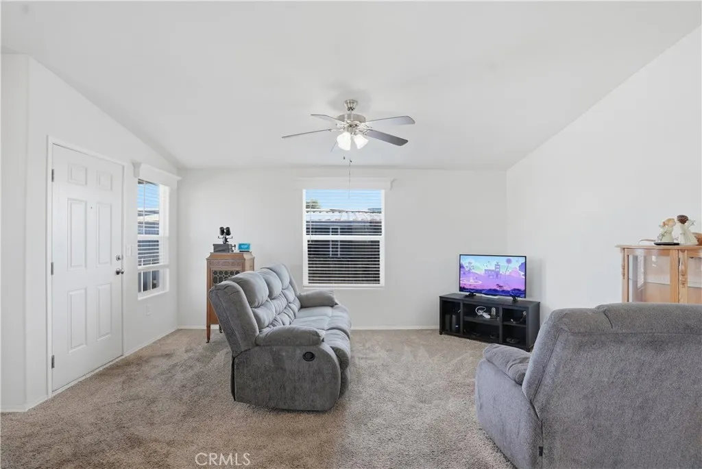 Smoke Tree Mobile Estate 2020 Canyon Lake model Fleetwood Manufacture Home that is 3 bed 2 bath, 1127sf and is ready for quick sale. Home includes Large open great room concept with vaulted ceilings, recessed lighting, island kitchen counter and indoor laundry. Wood look flooring and carpet, black appliances, dual pane windows, 2 inch miniblinds, newer fencing and central a/c. Park amenities include: Sparkling Pool, Indoor spa and sauna, fitness studio, clubhouse, billiards room, dog park, dog spa, community library and a carwash station.