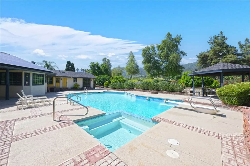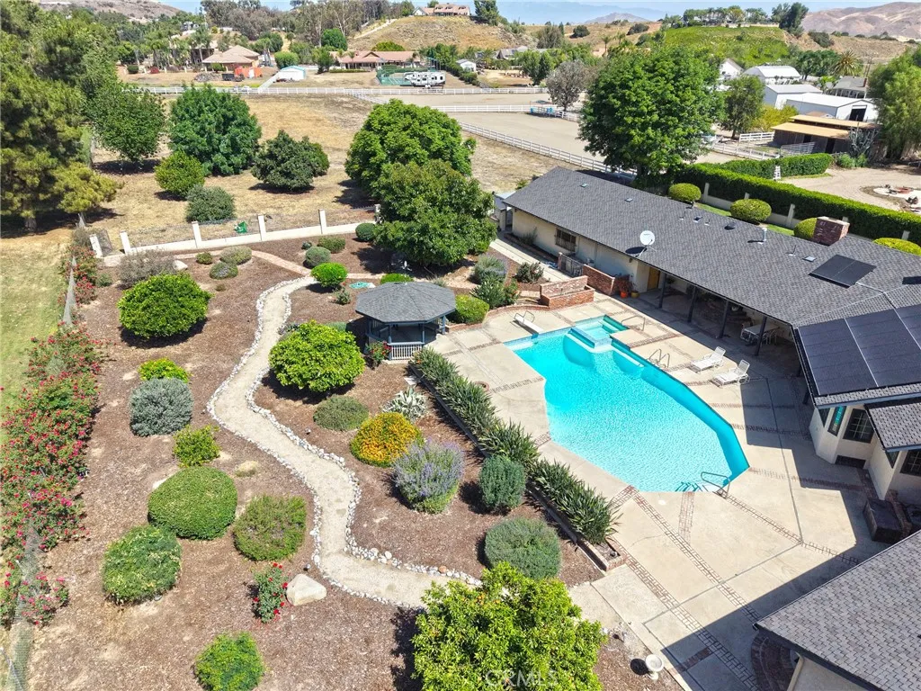 First time on the market! This exceptional estate offers a rare opportunity to own a private retreat on 2.61 acres of flat, fully usable land in Corona. Featuring 5 spacious bedrooms, each with its own ensuite bathroom, and approximately 3,479 square feet of living space, this home is designed for both comfort and functionality. Step outside to your own resort style oasis complete with a sparkling pool and spa surrounded by lush, mature landscaping, vibrant flowers and an abundance of citrus and avocado trees. The expansive grounds provide endless possibilities, including room to build an ADU, guest house, or additional recreational amenities. Additional highlights include paid-off solar, a 5 car garage with ample storage, and plenty of space for RV parking, toys or hobbies. With NO HOA and low taxes, this property offers both freedom and long term value. Ideally located just minutes from golf courses, shopping, dining and convenient freeway access, this home perfectly balances privacy with accessibility. This exceptional estate redefines luxury, delivering a seamless blend of elegance, comfort and elevated living.