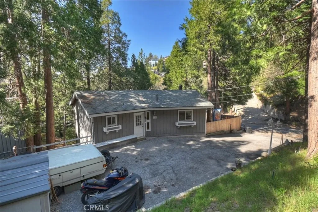 Location! Location! Location! Prime area of Crestline close to Lake Gregory, but with no lakeview. This open concept home features 3-bedrooms and 2-bathrooms. High ceilings and skylights bring in a lot of natural light. The property has so much to offer including level parking and level entry and everything you need on one floor. Walking in, you enter an open floorplan, a lot of windows and high ceilings. This level includes a large bedroom and a full bathroom and a deck off of the living room. The lower level has two large bedrooms, a bathroom and the laundry room. The utility room is off of the laundry room. The current owners have added new flooring, a retaining wall, Fencing, a level area in the back yard and more. From the lower level you can access a second deck that is covered. The level backyard space currently holds a children's play set which can be included or the space can be converted into a different purpose. It is a peaceful setting. Crestline has become a favored destination as well as being popular for full time residents. Lake Gregory hosts weekly farmer's markets with outdoor entertainment every Friday evening in the summer. Popular events include The Fourth of July Jamboree Days with Fireworks and a local parade. Various hiking trails close by including the lake trail. **Ask me about 100% finacing FHA loans with interest rates in the 5's!!!