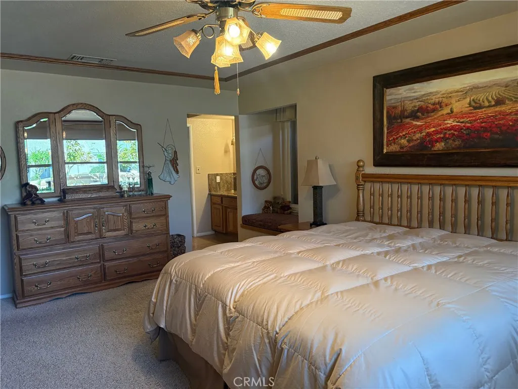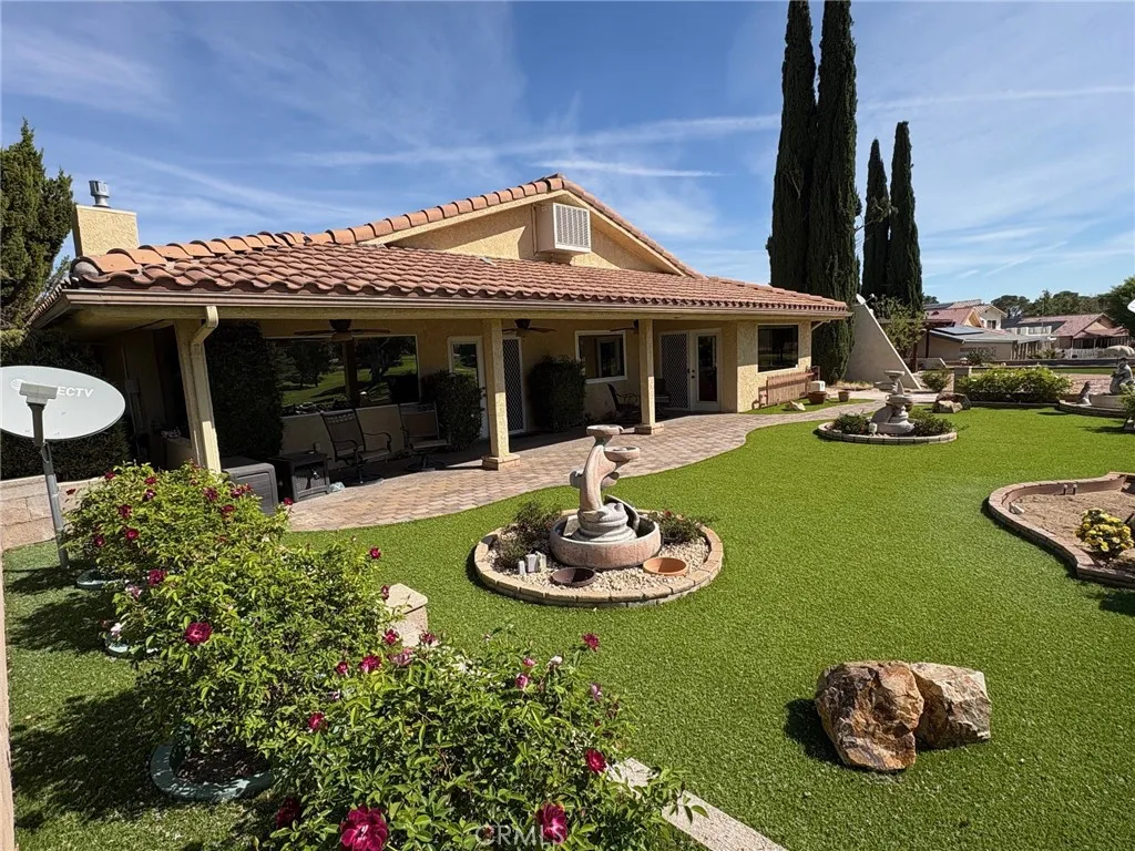 Custom home on the golf course. 2 bedroom, 2 bath home with upgrades galore! Don't miss your chance to live in the resort oasis of Silver Lakes. Gorgeous front courtyard enclosed for privacy. The living room features a cozy natural gas fireplace with large windows looking out onto the golf course. A bonus area is included off the living room with more gorgeouse views. The large well appointed kitchen makes meal prep a breeze, plenty of storage and counter space. Kitchen opens to expansive living room and dining area. Two car garage temperature controlled with work areas and attic storage, also includes a golf cart garage. Attic storage with lights and catwalk. Enjoy the large low maintenance back yard and patio which is great for entertaining, or simply relaxing as you watch the golfers make their way down the fairway. You will love the golf in SLA, which is included in your low montly home owner dues. Lovely clubhouse with fine dining and a bar area. Beautiful resort style pool with spas. There are tennis and pickleball courts, a pro-shop, as well as a ballroom, gymnasium, ballroom, library, also included are horse stables, RV storage and two shimmering lakes stocked for fishing or just relaxing on you boat. Come enjoy resort desert living at it's finest!