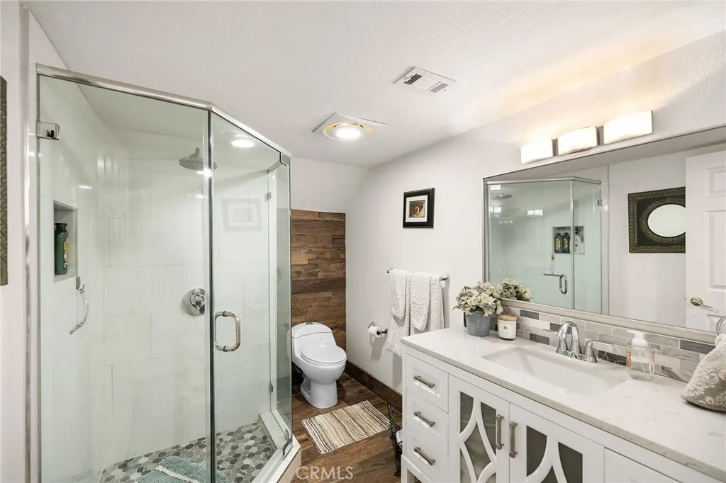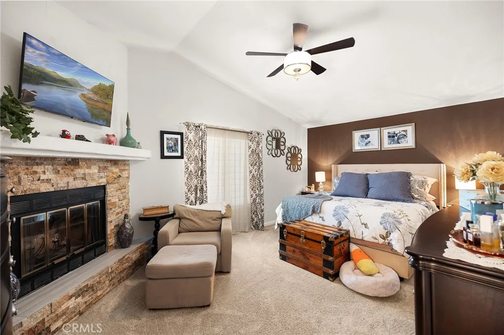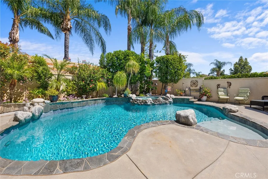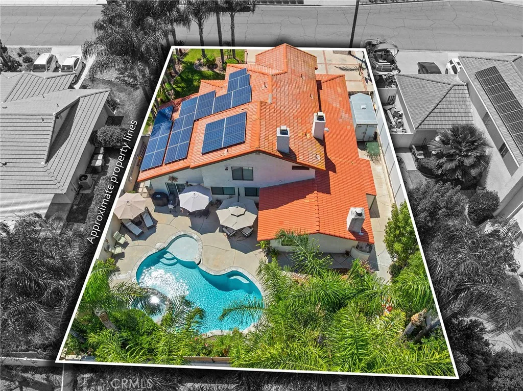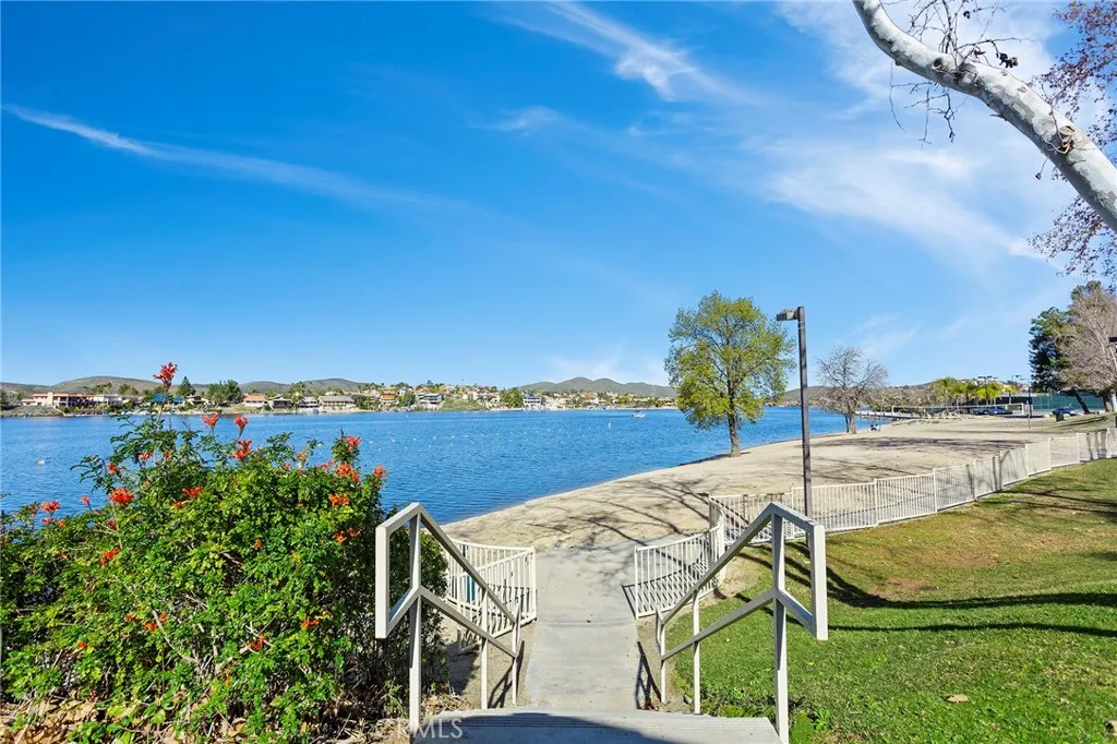 Welcome to 30542 Meadowlark Dr, located in the highly desirable gated community of Canyon Lake. This home is situated on quiet street just off the main gate. Meadowlark home and has a pool and spa combo, 5 bedrooms, 3 bathrooms and 2 car garage, RV or boat parking on side with a flat driveway. Home features a private resort style backyard with mature landscaping, raised spa with small waterfall into pool. The pool and spa are heated with propane tank. Home has a front room used as game room or living area, formal dining room or used as seating area with French Doors leading to patio. Kitchen is newly remolded with white shaker self-closing cabinets and quartzite counter tops and tile back splash, kitchen eating area with fireplace. Good size family room with fireplace and French Doors to patio and pool. There are two bedrooms downstairs, bathroom and laundry room and two bedrooms upstairs, bathroom and main bedroom with fireplace and bathroom. The driveway is a large flat driveway with ample parking. Paid solar panels. Garage has custom cabinets all around. If you are searching for a spacious Canyon Lake home with pool/spa, paid solar and many features which gives a resort feeling than this home is the one!