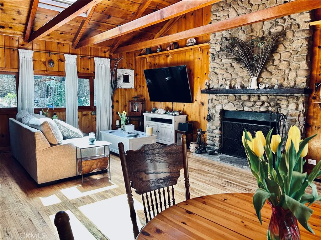A Hidden Sanctuary Among the Boulders Set within historic Chatsworth Lake Manor, this move-in ready storybook retreat blends Carmel charm with Topanga Canyon living. Situated on a rare, fully fenced 16,005 sq ft flat lot, the property offers exceptional privacy, usable space, and a true indoor-outdoor lifestyle surrounded by majestic boulders, a seasonal creek, and mature landscape. The main residence features 2 bedrooms and 2 bathrooms across 1,481 sq ft, complemented by a separate 1 bed / 1 bath, 616 sq ft unit with its own kitchenideal for guests, extended living, or creative use. The home offers two fireplaces, including a striking natural river rock statement piece. Thoughtfully updated, the main home includes hardwood floors, dual central HVAC, newer roof (2012), cement siding, and a hardwired security camera system. The primary bath features a marble countertop and original clawfoot tub, while the kitchen includes a water filtration. Skylights and large windows bring in abundant natural light and fresh mountain air. Additional highlights include EV charger (50 amp / 220), small basement, and laundry area. The grounds offer multiple functional spaces, including a powered, insulated shed and a 20-ft containerideal for a studio, gym, or workshop. Mature passionfruit vines and a custom entry gate add to the charm. Dual access from Raymond Street and Ida Place provides ample parking, including a 2-car garage and additional 8+ on-site parking spaces. Minutes from the 118 and 101 freeways with easy access to Porter Ranch, Calabasas, Woodland Hills, and Simi Valley, plus clo