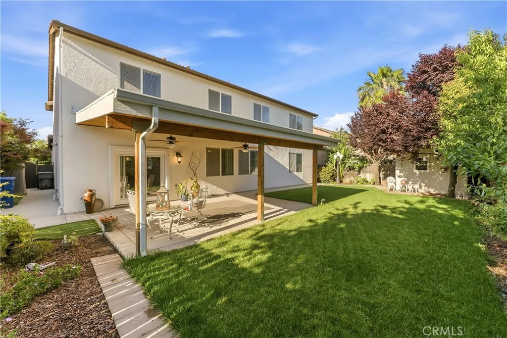 Experience refined living in this exceptional Clovis residence, where timeless elegance meets modern comfort. This beautifully designed home offers an elevated lifestyle within the highly acclaimed Clovis Unified School District. From the moment you enter, you're welcomed by a grand, light-filled interior featuring soaring ceilings, expansive living spaces, and a seamless, sophisticated flow ideal for both everyday living and upscale entertaining. The heart of the home is a well-appointed gourmet kitchen, complete with granite countertops, abundant cabinetry, and an open-concept design that effortlessly connects to the main living areas. Thoughtfully designed for versatility, the main level features a private bedroom and full bathperfect for guests or multi-generational livingwhile the upper level showcases a spacious loft retreat and generously sized secondary bedrooms. The luxurious primary suite offers a true escape, highlighted by a spa-inspired bathroom with a soaking tub, separate shower, dual vanities, and an expansive walk-in closet. Step outside to a private backyard oasis, where a covered patio creates the perfect setting for outdoor entertaining or tranquil evenings.