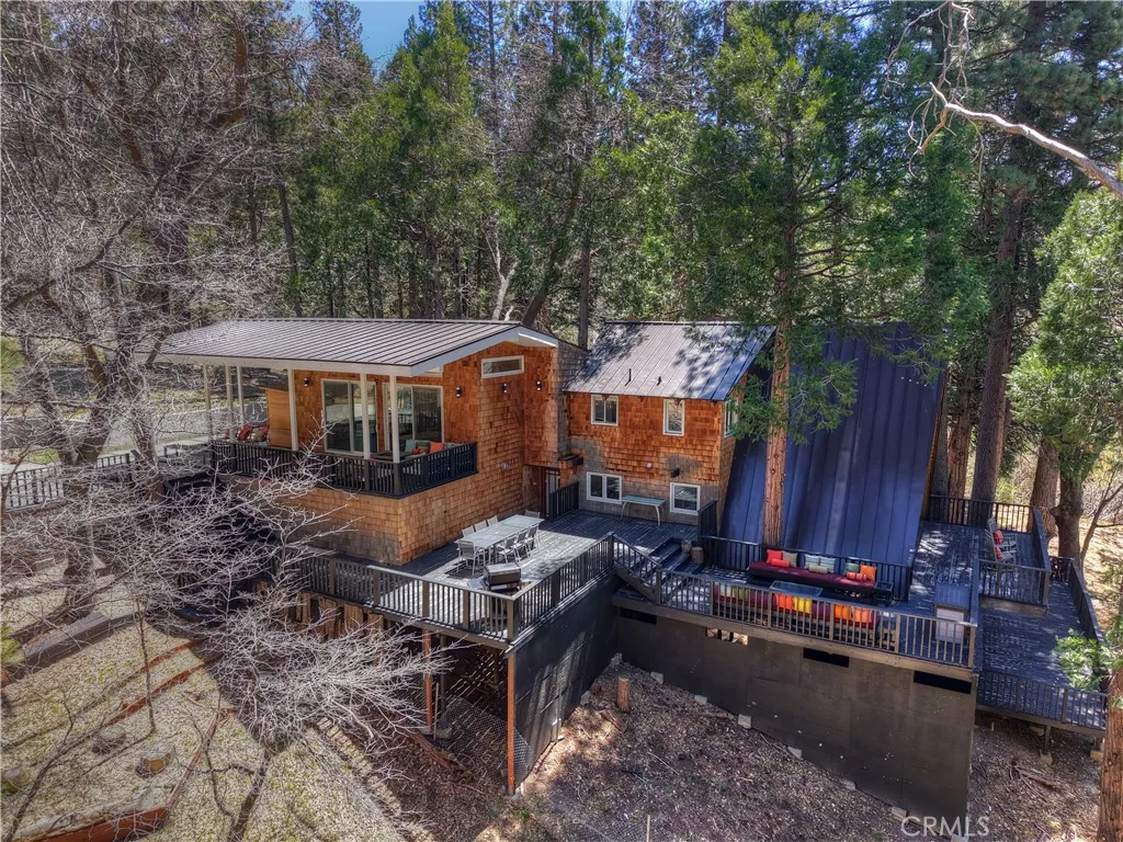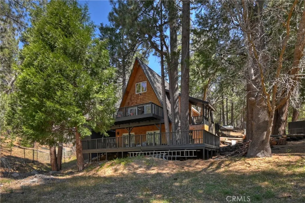Step into your own secluded paradise where towering pines, fresh mountain air, and the gentle rustle of leaves create a sense of serenity thats hard to find anywhere else ~ This enchanting A-frame custom cabin, perched on over 2 acres of pure bliss, offers the perfect illusion of total privacy ~ Whether youre dreaming of adding a garage or workshop or creating an ADU, theres room to bring your vision to life ~ Imagine mornings sipping coffee on your expansive deck as sunlight filters through the trees, and evenings wrapped in cozy warmth by the wood-burning stove as the forest whispers outside your windows ~ Inside, 2,400 sq. ft. of thoughtfully designed living space includes three spacious bedrooms, an additional sleeping area and a cozy office space, each level with its own full bathroom, and a family room crafted for connection, entertaining, and making lasting memories ~ Double glass doors create seamless indoor-outdoor living, opening onto over 2,000 sq. ft. of deck space that invites alfresco dinners, stargazing, or quiet reflection among the fresh smell of pines ~ Adventure is close ~ 3 miles to Snow Valley Resort, 5 miles to Sky Park at Santas Village, 7 miles to Lake Arrowhead Village for dining, shopping, and entertainment, and only 10 miles to Big Bear Lake ~ Additional amenities include, a metal roof, automatic start generator, EV charger, outdoor sauna, fire pits, two laundry areas, city sewer connection, and a gated entry, this all combines convenience with mountain charm ~ Whether youre seeking a primary residence, a vacation retreat, or a smart investment, t