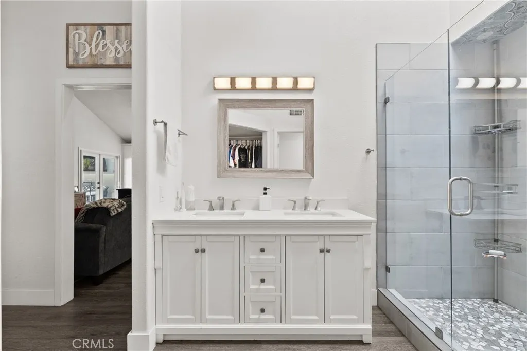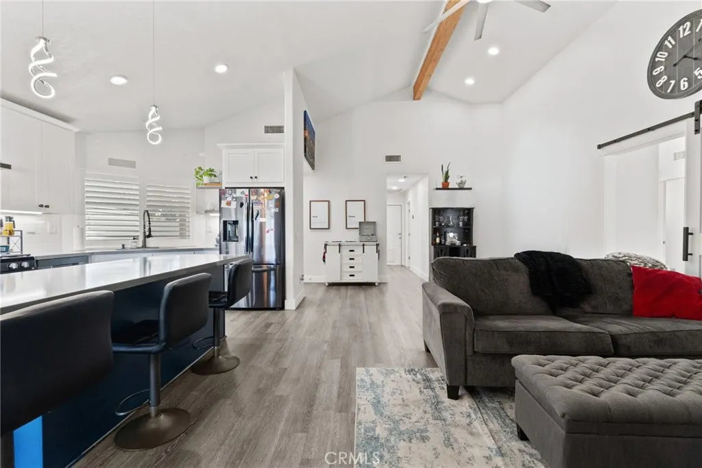 Welcome to 42132 Sweetshade Lane where modern design meets effortless indoor-outdoor living in the heart of Temeculas The Villages community. This fully remodeled single story home has been thoughtfully reimagined to create a bright, open-concept layout perfect for todays lifestyle. Walls have been removed to seamlessly connect the kitchen and living spaces allowing natural light to flow throughout and creating an inviting atmosphere for both everyday living and entertaining. The stunning kitchen serves as the centerpiece of the home featuring a large island with abundant seating and storage, sleek light gray quartz countertops, stainless steel appliances, crisp white cabinetry and a timeless white subway tile backsplash. Plantation shutters throughout the home add a touch of elegance and privacy. Offering three spacious bedrooms and two beautifully updated bathrooms each with modern walk-in showers this home blends comfort with style. The primary suite is a true retreat complete with a designer wallpaper accent wall, dual sink vanity and a walk-in closet. Step outside and prepare to be impressed! This backyard is truly a showstopper. Designed for ultimate entertaining youll find a custom cantilevered patio cover with mounted heaters, two large flat screen TVs for game days and a fully equipped outdoor kitchen featuring a built in BBQ, sink and refrigerator. The space is enhanced with a full sound system, ambient landscape lighting and a large gas fire pit set on low maintenance artificial turf. To top it all off, unwind in the oversized above ground spa under the stars. Lo