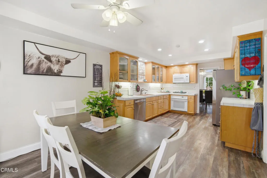 Rarely available in the desirable County Square Villas, this beautifully maintained 3-bedroom, 3-bath townhouse is the largest model and offers space, comfort, and an unbeatable Ventura lifestyle. The downstairs offers a spacious kitchen with a bright breakfast dining area, a large living room with a cozy fireplace, a dining room and a convenient powder room, perfect for everyday living and entertaining. Step outside to a generous private patio, ideal for relaxing or hosting gatherings. Upstairs, you'll find three generously sized bedrooms and two full bathrooms, including one that has been tastefully updated. Adding incredible flexibility is the updated, expansive bonus room above the garage with its own separate entrance, this space is separate from the main home and full of possibilities. Enjoy year-round comfort with a new furnace and ductwork, along with durable luxury vinyl plank flooring throughout. The community is ideally located next to scenic walking paths and offers a pool and spa. All just a short stroll to shopping, dining and everything Ventura has to offer.