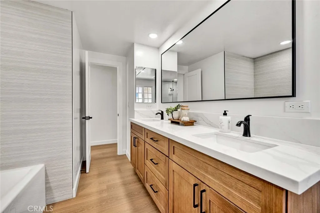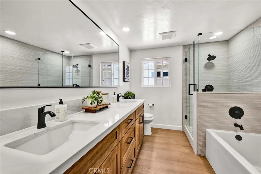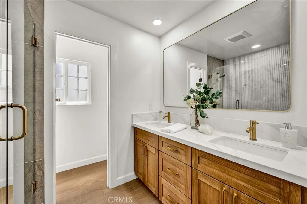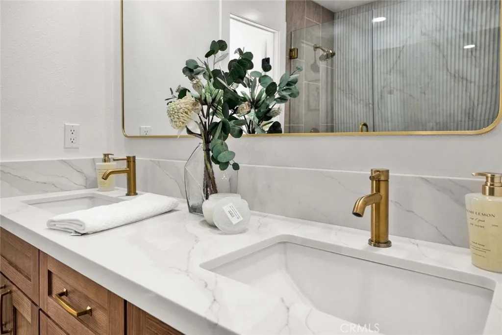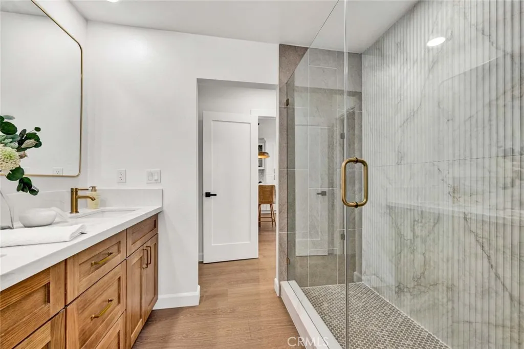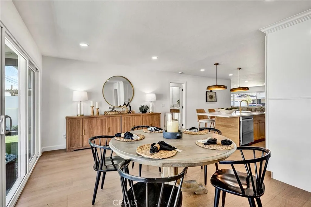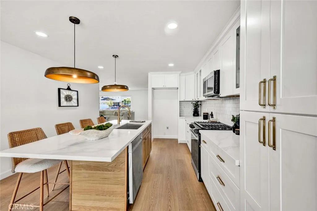 Stunning 3-bedroom, 2-bath fully remodeled home featuring convenient single-story living. This beautifully updated property showcases all-new windows, elegant vinyl flooring, and quartz countertops throughout. The chef-inspired kitchen is a true centerpiece, complete with stainless steel appliances, an extra-large island, and a custom backsplashperfect for both everyday living and entertaining. Both bathrooms have been completely upgraded with new fixtures, modern cabinetry, sleek shower doors, and dual sinks, offering a spa-like feel with custom tile work and stylish finishes. Enjoy recessed lighting and fresh interior paint that enhance the homes bright, contemporary ambiance. The private, quaint backyard is ideal for relaxing or entertaining, featuring a patio cover, newly stuccoed walls, and fresh landscaping. This move-in-ready home is a must-see!